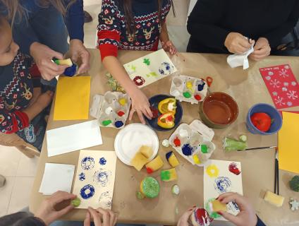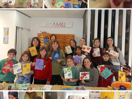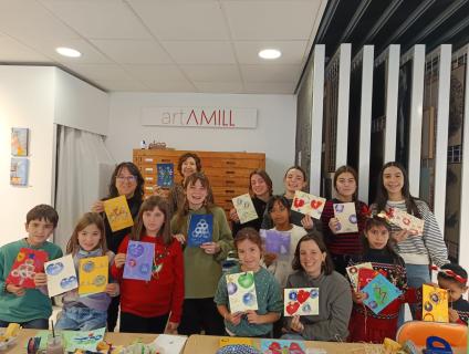 Dissabte al matí, l’artAMILL va oferir un taller de Nadal “Introducció al tamponatge”, on els i les participants van crear les seves pròpies postals nadalenques