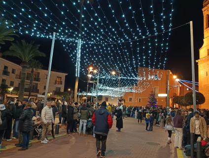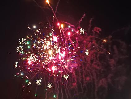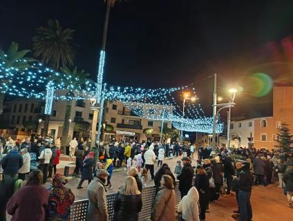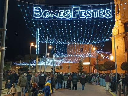 La seva visita va començar amb un espectacular castell de focs artificials que va il·luminar el cel del municipi i va donar el tret de sortida a una nit màgica.