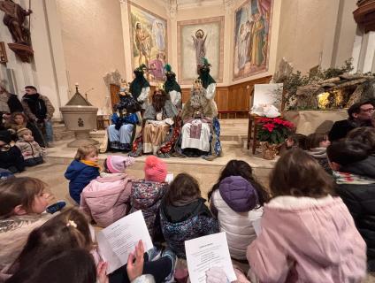 Com és tradició, els Reis van fer parada a l’Església de Santa Caterina, on el mossèn els va donar la benvinguda.