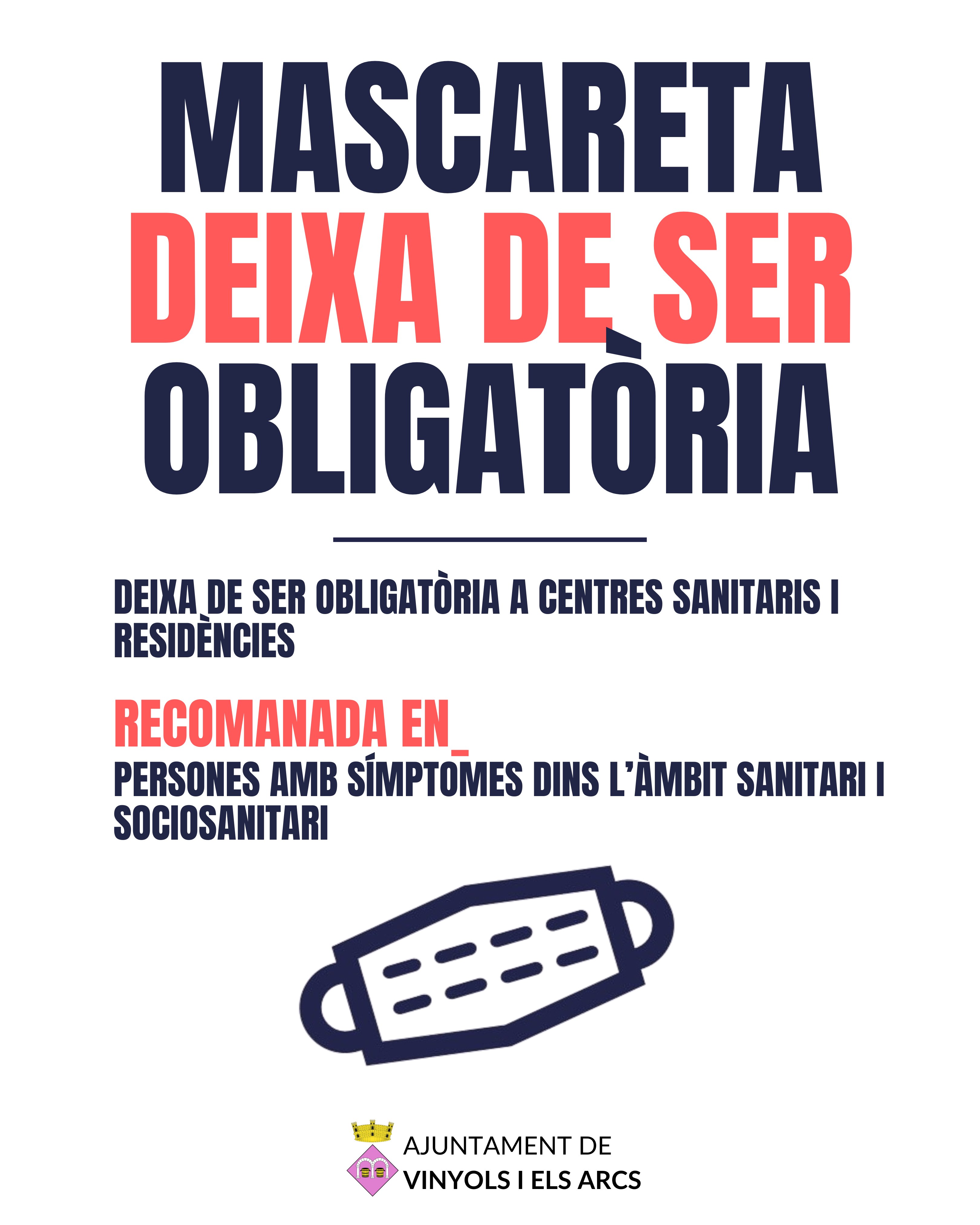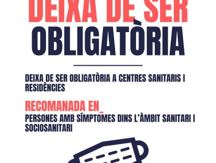 La mascareta deixa de ser obligatòria en centres sanitaris i residències per la baixada en la incidència de les infeccions respiratòries.